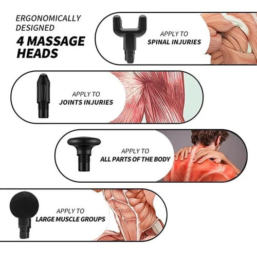 Incluye: 1 Pistola de Masaje, 4 cabezales, 1 cable Tipo-C